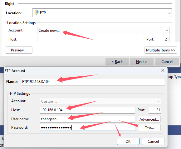 常规备份方式的潜在风险为如果点晴MIS服务器被勒索病毒或其他病毒损坏了文件时,可能会导致部分被损坏的文件也被同步备份覆盖到备份机上,造成备份机上的相应文件也被损坏。KLS提供了上面这个方法避免此问题的发生,在点晴MIS系统各个盘符的根目录下放一个小文件,设置KLS实时检测此小文件,如果此文件有任何异动,则视为服务器遭到攻击,KLS就会立即停止自动备份,可以有效规避上面所述风险。 二、KLS_Backup同步备份设置方法![]() KLS支持压缩包备份(Backup)、同步备份(Synchronization)等多种备份方式。 一般采用同步备份即可,此方式的特点是备份机上无需准备大量空间,只要确保备份盘剩余空间不小于点晴MIS系统硬盘大小即可,因为是采用同步方式进行备份,所以不会产生多余的文件空间占用,完全与备份来源目录所有文件一致,也不会占用大量的服务器带宽资源,只有发生变动的文件才会被同步到备份机上,比较适合预算紧张的单位。 采用同步备份的方式,会按照指定周期,自动将指定的目录同步到指定目的地。此备份方式是将来源目录同步到目的目录,同一个文件只有一个备份,不会产生多个备份造成大量的空间占用。由于只会备份有变化的文件,所以也不会占用大量的服务器硬件资源和带宽,非常适合有大量文件需要备份的场景。 下面介绍同步备份方式下的设置方法: 1、创建新的备份项目 2、点击菜单“New” 3、点击“Synchronization”,然后点击“OK” 4、给备份任务命名,写上备注,然后点击“Next” Left:备份来源,Location支持很多种,这里选择本地目录“Local/Network/Removable”,Folder选择准备备份的本地目录; Right:备份目的地,Location也支持很多种,这里选择“FTP”,Account选择“Create new...”: 5、在上面填入FTP服务器的地址和连接账号、密码,确认无误后,点击“Test...”,测试可以正常连接后,点击“OK” 然后在Path中选择FTP服务器上的目的备份文件位置,如果没有合适的目录,那么可以立即创建一个新的目录用于同步备份。 如果有一些文件不想备份,那么可以点击“Filter...”,设置过滤条件(具体设置方法自行测试体会):