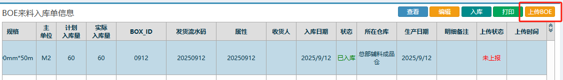 点晴模切ERP-BOE组件来料单流程