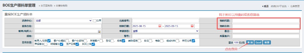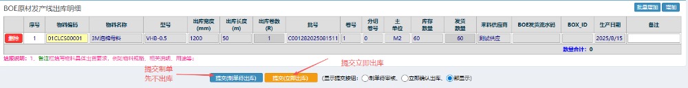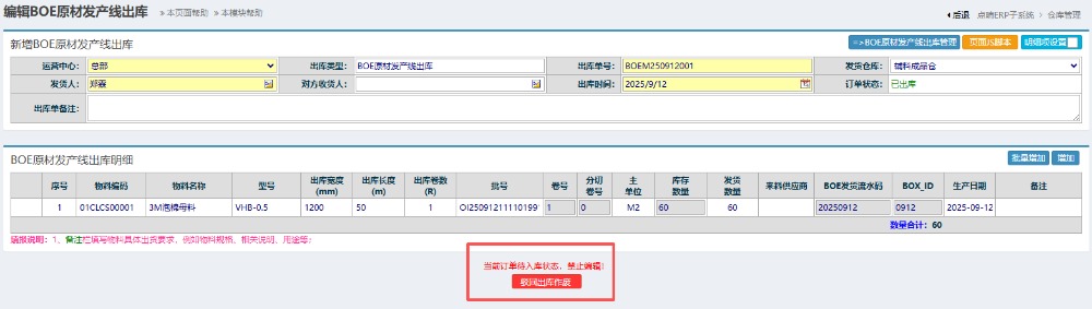 点晴模切ERP-BOE原材发产线出库流程