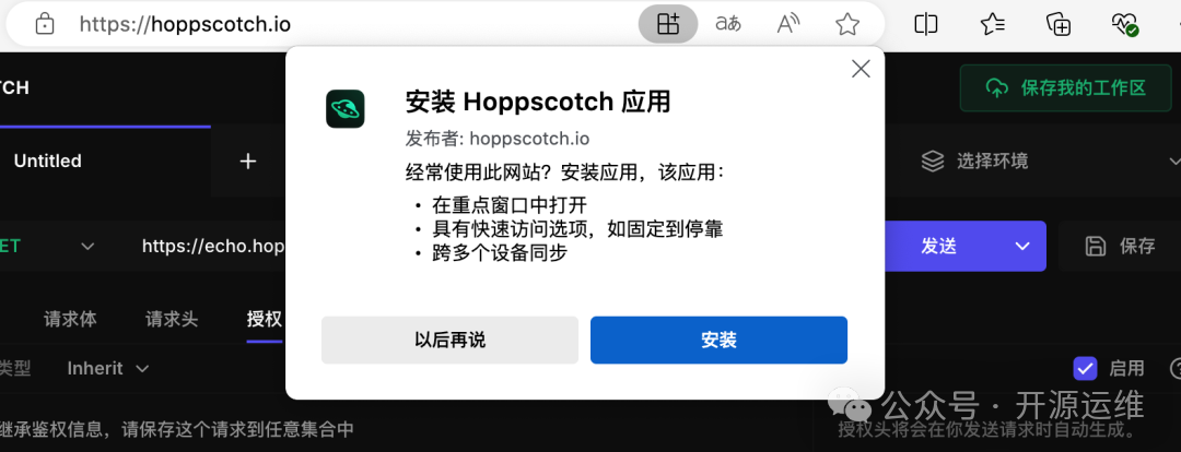 Hoppscotch 是一个开源的 API 调试工具,专为开发者设计。它功能全面,支持 HTTP 请求、WebSocket、GraphQL、Socket.io 等多种协议,同时轻量到可以作为 PWA 应用直接下载安装,快到飞起,轻到绝对不拖慢你的设备速度。更重要的是,你几乎可以高效完成一切与 API 有关的操作,还完全免费!