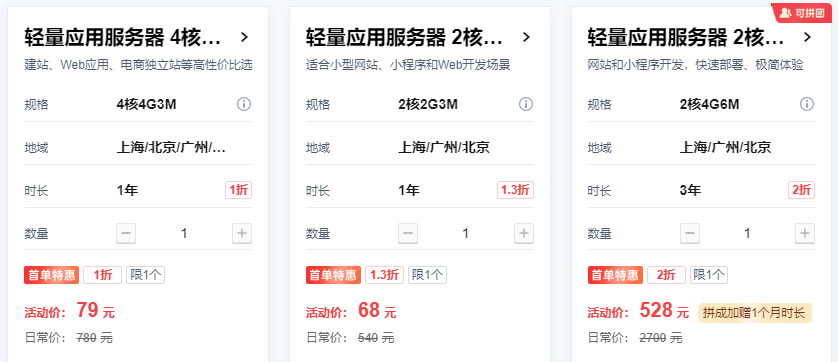 小技巧:购买后立即续费一年,可锁定当前价格,避免后续调价。 活动地址:https://t.aliyun.com/U/hekmId 二、腾讯云 —— 三年套餐闭眼入,真香警告 腾讯云近年来在配置和价格上持续加码,尤其三年期套餐,年均成本不到200元,带宽充足、性能稳定,非常适合打算长期运营项目的用户。 轻量服务器 2核4G + 6M带宽 + 50GB SSD 轻量服务器 4核4G + 3M带宽 腾讯云轻量应用服务器,界面简洁、功能齐全,三年合约锁定低价,是追求性价比用户的理想选择。 活动地址:https://curl.qcloud.com/To20faTS 三、京东云 —— 低价入门首选,新手友好 京东云近年发力迅猛,价格极具竞争力,特别适合刚接触云计算的新手,或者想低成本试水项目的开发者。 云主机 CVM 2核2G 轻量服务器 2核4G + 5M带宽 云主机 CVM 2核4G 京东云控制台简洁直观,客服响应迅速,适合追求“省心+省钱”的用户群体。 限时抢购地址:https://3.cn/2-i5UbPc 四、其他高性价比备选(新老用户均可关注) 除三大主流云厂商外,以下几家也提供极具吸引力的优惠方案,尤其适合有特定需求的用户: 百度智能云 华为云 优刻得 UCloud 五、选购建议与注意事项 新用户建议优先考虑阿里云或腾讯云,首年优惠力度最大,配套资源丰富。 如计划长期使用,优先选择支持“续费同价”或“三年期套餐”的产品,避免后续成本飙升。 若项目紧急上线或面向海外用户,可考虑优刻得免备案专区,节省时间成本。 企业级项目建议从2核4G起步,带宽不低于3M,确保访问流畅和业务稳定。 下单后如支持“立即续费锁定价格”,建议第一时间操作,防止活动结束或价格回调。 最后提醒 云服务器促销活动更新频繁,部分特价库存有限,随时可能下架。 欢迎收藏本文,也推荐转发给有需要的朋友,一起节省上云成本。 各平台活动直达链接: 阿里云:https://t.aliyun.com/U/hekmId 2025年,低成本也能实现云端自由。 阅读原文:原文链接 该文章在 2025/9/18 12:23:48 编辑过 |