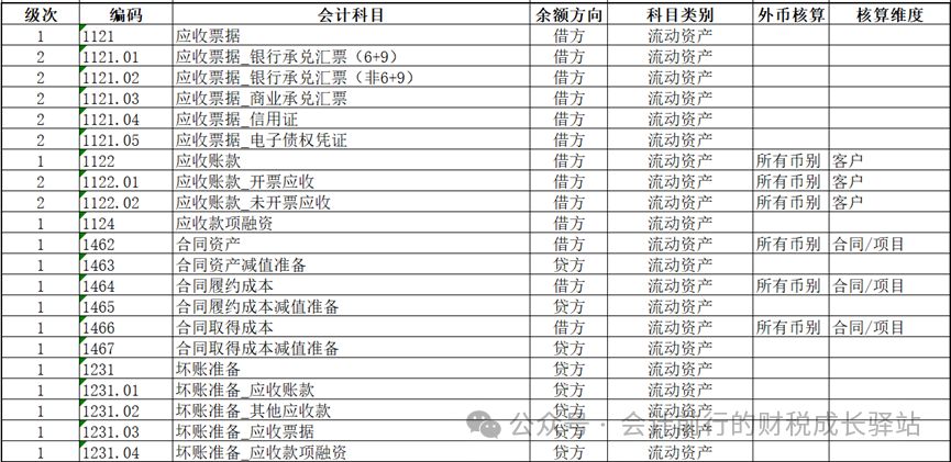 新会计准则的实施对企业的财务管理提出了更高的要求,设置合规、合理的会计科目是会计核算的基础,决定着核算的基础数据、记录方法和原则。是确保财务信息准确性和完整性的关键,直接影响到会计信息质量水平,影响到会计信息提供效率,影响到财务决策的效果。本文探讨新会计准则下的多维会计科目体系设置与应用,并提供详细的操作指南,旨在帮助企业提升财务管理效率。 通常情况下,会计科目分为资产类、负债类、所有者权益类、成本类、损益类、共同类。按照多年的财务工作经验,多维会计科目的设置需要考虑几个维度: 1、需要考虑选用的会计准则的法定要求。原则上国内企业应参考会计准则统一规定的一级会计科目编号(4位编码),不要随意打乱重编,企业可结合自身实际增设、减少或合并某些会计科目及设置明细科目。 2、需要考虑企业财务分析的管理需求。一些企业为发挥财务的管理价值,设置了专门的财务分析岗位,每月需要编制经营分析报告向管理层汇报,经营分析报告的数据来源就是财务核算的数据,因此需要根据财务分析岗位的同事设置细化的会计科目和多维辅助核算项目。 3、需要考虑会计科目与业务系统数据关联,确保财务数据与业务数据的一致性。比如:企业有完善的进销存库存系统、固定资产系统、费用报销系统等业务系统,会计科目设置时按存货大类进行科目设置,固定资产按辅助核算项目分类设置,费用系统需要建立费用项目与会计科目映射关系。 4、需要考虑会计科目与辅助核算实行分层设计,应分尽分、精准到点。在设计会计科目和辅助核算(核算维度)时能使用辅助核算(核算维度)的,就不要使用明细科目。辅助核算能够使会计科目体系更加简洁,同时通过设置不同的辅助核算维度,实现对经济业务的多维度反映和管理。 一、多维会计科目体系设置方法: 1.一级科目应严格遵循《企业会计准则-应用指南》附录的“会计科目和主要账务处理”设置科目,统一编码,科目名称和核算内容需与准则要求一致,应符合合规通用的原则。企业可结合自身实际增设、减少或合并某些会计科目,制造型企业的会计科目可分为五类,包括资产类科目、负债类科目、所有者权益类科目、成本类科目、损益类科目。 2.明细科目设置要坚持“分类合理,繁简适当”的原则,建议一般设置到三级科目即可,避免层级过深导致数据混乱和增加管理成本。若需更详细核算,可通过核算维度(如部门、项目、客户等)辅助分析,而非增加科目层级,应符合简洁高效的原则。科目编码时,不要将编码顺序号全部填满,保持一定的可扩展性。 3.由业务模块集成的会计科目通常不需要增加明细科目,如启用了固定资产系统,可设置资产类别的辅助项目,如启用进销存存货系统,可设置存货类别与存货科目的映射关系,如启用费用管理系统,可设置费用项目、部门核算、人员辅助的辅助核算。会计科目的设置应在一定时期内保持稳定,不宜经常变更,符合相对稳定性的原则。并非要求会计科目绝对不能变更,当会计环境发生变化时,会计科目也应随之作相应的调整,以及时全面地反映经济活动。 4.辅助核算是对账务处理的一种补充,即实现更广泛的账务处理,也适应企业管理和决策的需要。常见的辅助核算有:往来单位、部门、个人、项目等。部分财务软件还支持自定义扩展辅助核算项,以满足企业个性化需求。辅助核算必须设在末级科目上,尽量不要修改科目的辅助核算。 5.设置会计核算科目与核算维度都要遵循业务需求导向,匹配管理需求。 (1)当需要按单一维度核算时,明细科目更简单直接。如应付职工薪酬科目核算的内容多而杂,包括职工工资、职工福利费、职工教育经费、社会保险、住房公积金等均通过本科目核算,应设置完整合规的明细科目。如应交税费科目设置需要考虑符合税务相关规定的要求,更有利于税务申报。 (2)当需要按多个维度分析数据时,应采用辅助核算方式。如应收账款、预收账款、预付账款、应付账款、其他应收款和其他应付款这三组往来科目是最重要的,使用频率较高,需要设置二级甚至到三级明细科目。费用类科目主要以辅助核算为主,根据需要核算的精细度来设置【部门】、【职员】、【项目】等辅助项目,也可以同时设置多个辅助核算项目。会计科目和辅助核算的组合如下: 二、制造型企业多维会计科目设置示列: 1.货币资金和交易性金融资产科目设置示例 1.1银行存款科目核算企业存入银行或其他金融机构的款项,因银行账户是变动的,不但会增加,还会减少,所以建议设置成辅助核算。 1.2交易性金融资产是指核算企业指定或应划分为以公允价值计量且其变动计入当期损益的金融资产,是企业为了近期内出售而持有的金融资产。比如,企业以赚取差价为目的从二级市场购入的股票、债券、基金等。通过“交易性金融资产”科目核算,可按交易性金融资产的类别和品种,分别“成本”“公允价值变动”等进行明细核算。 2.应收往来科目设置示例 2.1应收票据核算企业因销售商品、提供劳务等而收到的商业。包括银行承兑汇票和商业承兑汇票。实务中,电子债权凭证(以“链”“信”“单”“宝”“e”等命名)与商业承兑汇票具有高度相似性,在会计上将其计入应收票据科目核算确实有一定合理性。如已背书或已贴现未到期的