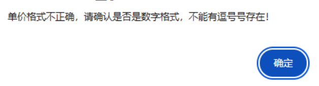 :点晴ERP-弹出提示:单价格式不正确,请确认是否是数字格式,不能有逗号号存在!