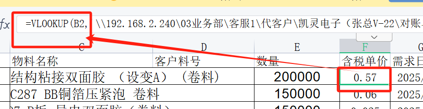 单价那一栏的信息是用excel函数匹配出来,导入的信息非数字而是一串函数公式。