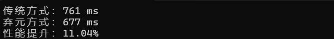 Console.WriteLine($"性能提升:{((watch1.ElapsedMilliseconds - watch2.ElapsedMilliseconds) / (double)watch1.ElapsedMilliseconds):P2}");