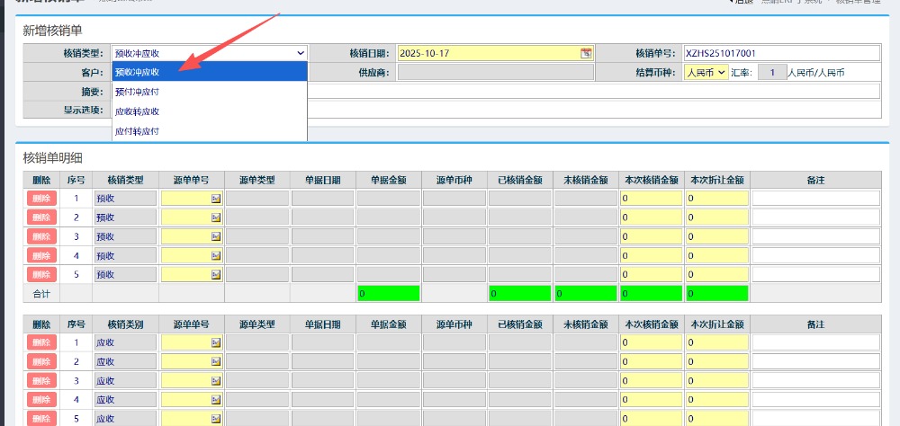 例如预付冲应付,上面明细选择对应的预付单,下面明细选择对应的对账发票单据,