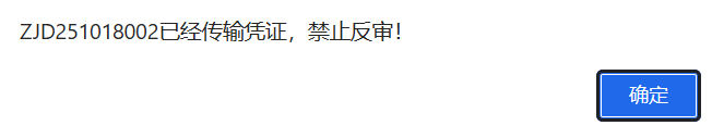 [点晴模切ERP]点晴FMS-弹出提示:已经传输凭证,禁止反审!