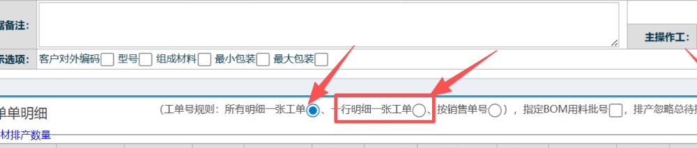 还有,要注意在排产界面上尽量不要勾选第一个按钮,会导致明细只会汇总在一张单上。